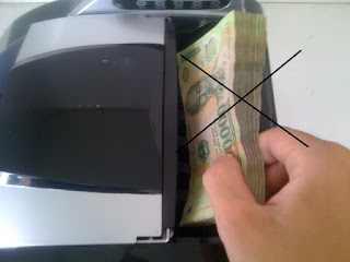 Hình 1: Cách thả tiền đúng cách khi đưa vào máy đếm tiền là khi đếm ta xòe xấp tiền ra, khi đó máy đếm tiền sẽ đếm tờ tiền nằm trên cùng trước.